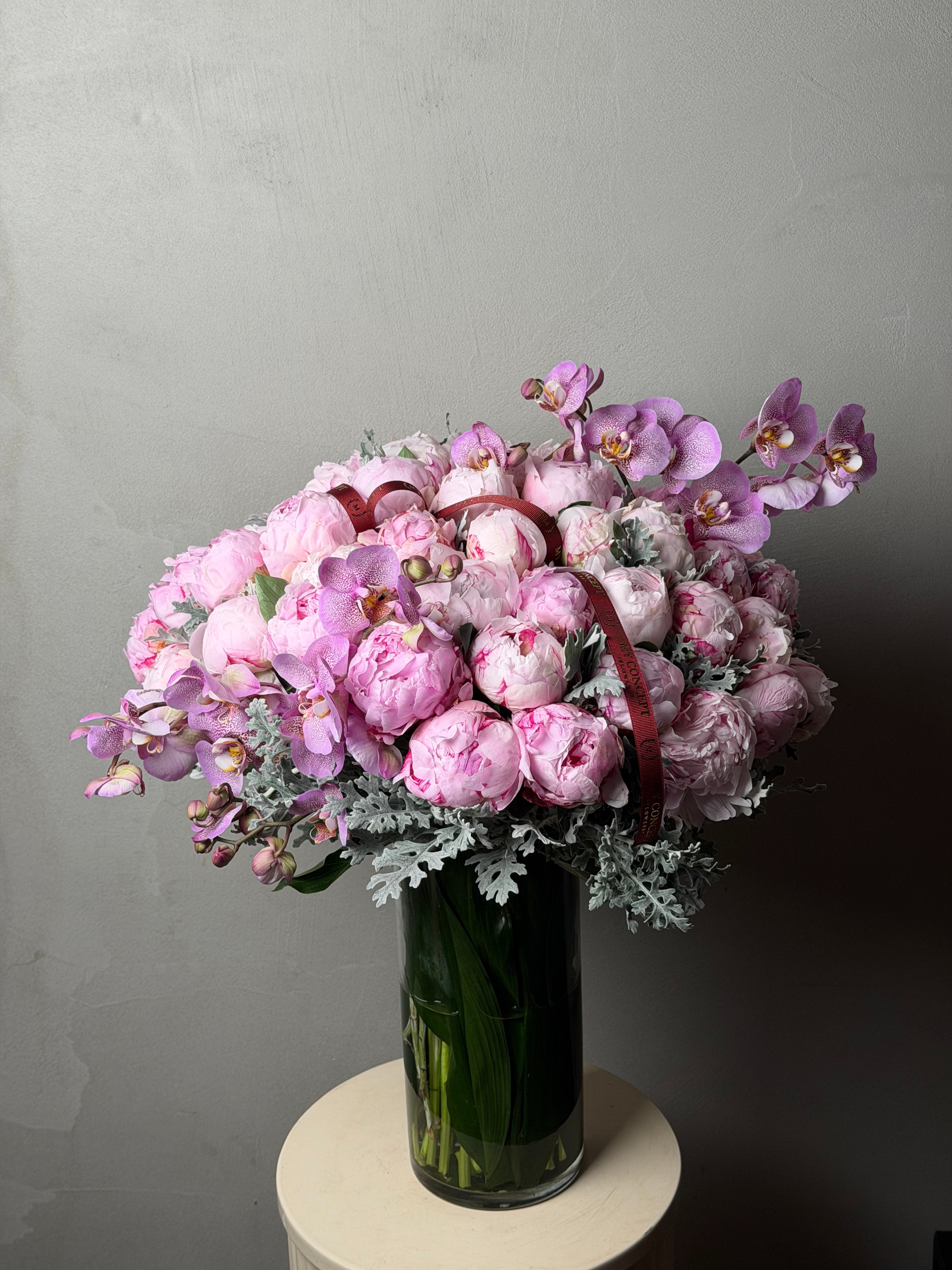 Kullanılan çiçek anastasya, gül ve orkide türüdür. Gül aşkı, orkide zarafeti, anastasya ise kalıcılığı simgeler.
